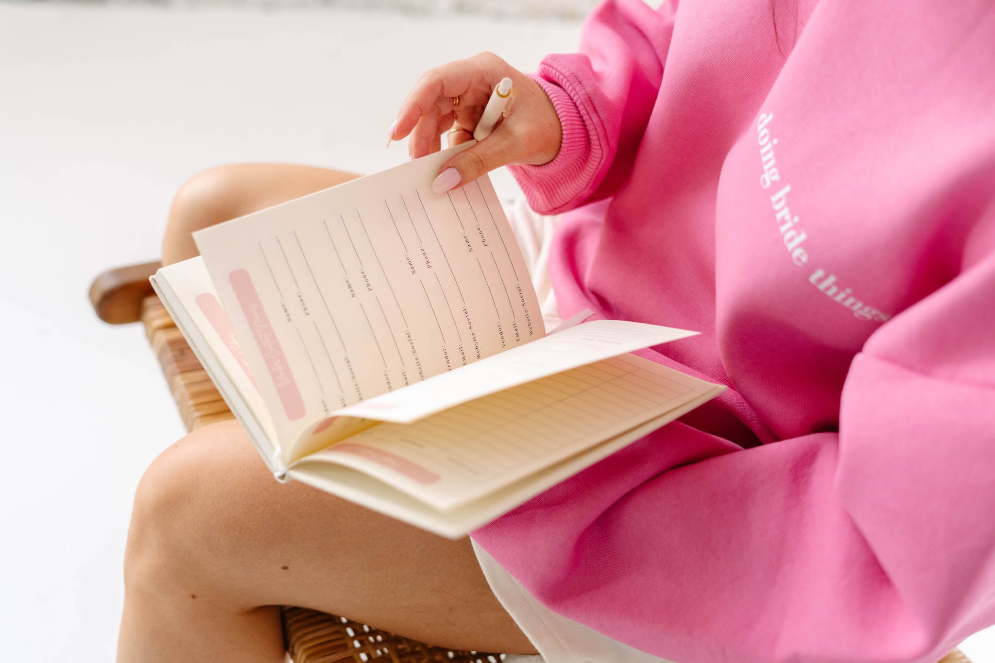 Plan your dream wedding with the 'doing bride things' planner. Our stylish, undated weekly wedding planner book includes everything you need to stay on top of your wedding year. Perfect for a bridal shower gift, engagement gift, or to give to yourself as a bride!